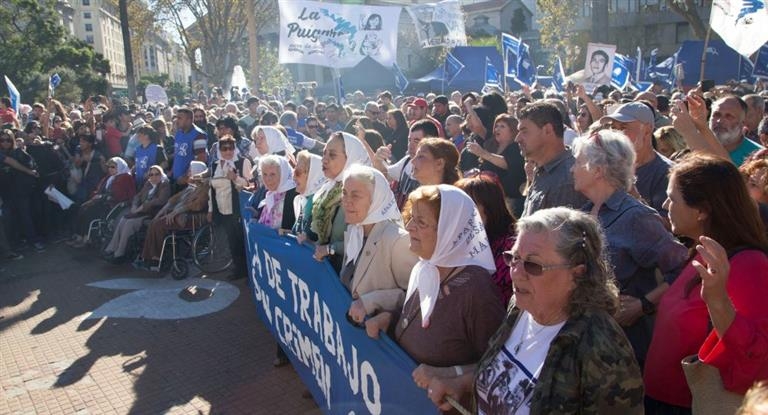Madres de Plaza de Mayo Línea Fundadora conmemoró los 40 años de la constitución de la emblemática entidad de derechos humanos que se enfrentó con la última dictadura militar, con un acto que comenzó a las 15 cerca del monumento al General Belgrano, frente a la Casa Rosada.