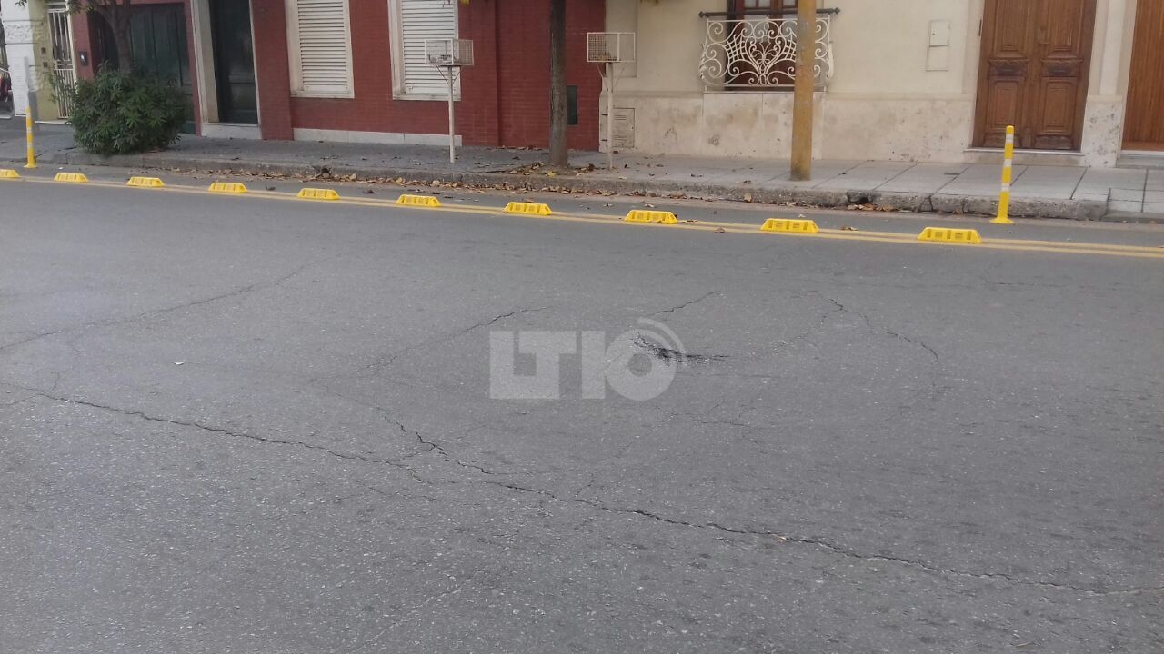Sobre calle Ituzaingó, entre Sarmiento y Necochea, se está produciendo un hundimiento del asfalto.
