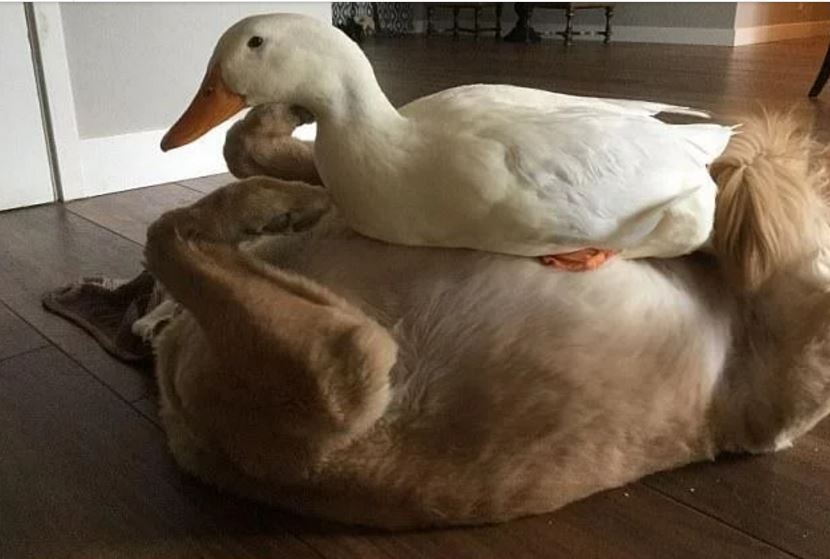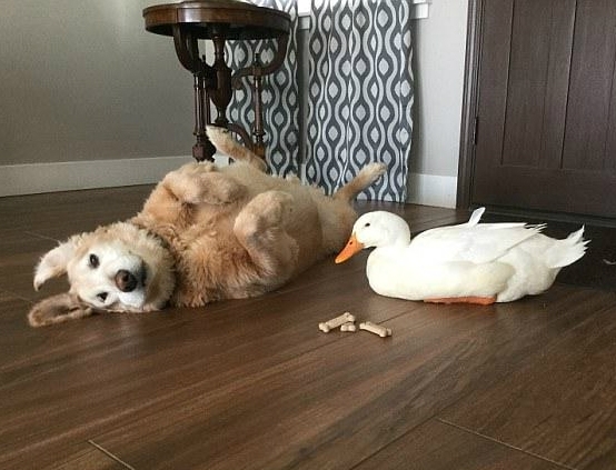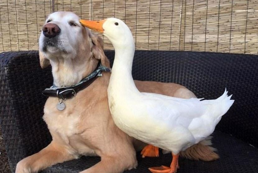Por un lado está Barclay, un grandote Golden Retriever que no para de jugar. Por el otro está Rudy, un hermoso pato que se acostumbró a correr a su amigo por todos lados de la casa. Ambos tienen cuatro años y se criaron juntos en un hogar de California.