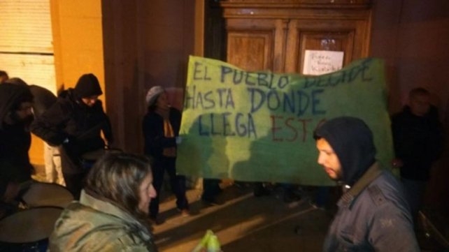 En el interior de la sede gubernamental estaban la gobernadora Alicia Kirchnery el vicegobernador Pablo González junto al diputado nacional Mauricio Gómez Bull y las senadoras nacionales Virginia García y María Ester Labado, del Frente Para la Victoria. Los manifestantes se ubicaron en los accesos por las calles Alcorta y Comodoro Rivadavia y frente al ingreso a la Jefatura de Policía de Santa Cruz.