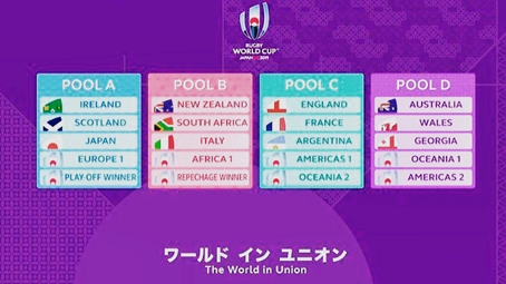 Grupo A: Irlanda, Escocia, Japón, Europa 1, ganador del play-off.