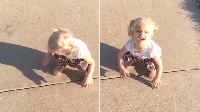 Esta tierna niña se enoja porque la sigue su propia sombra