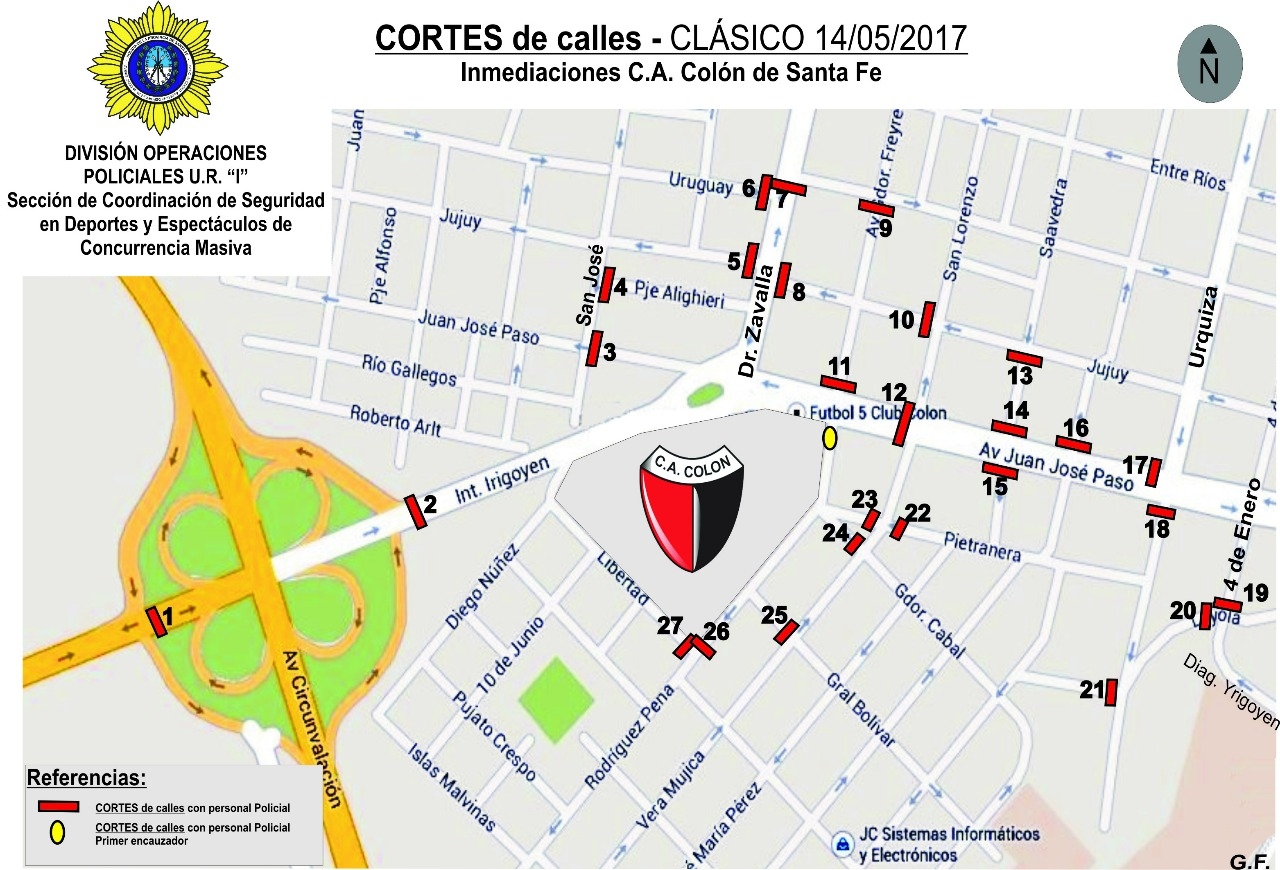Además, se realizarán patrullajes por las adyacencias para el control y prevención de hechos delictivos por las inmediaciones. Dichos dispositivos y controles se establecerán a partir de las 10:00 hs. del día domingo 14 de mayo del año 2017, hasta finalizado el Operativo Clásico y logrado la desconcentración de todas las personas concurrentes.