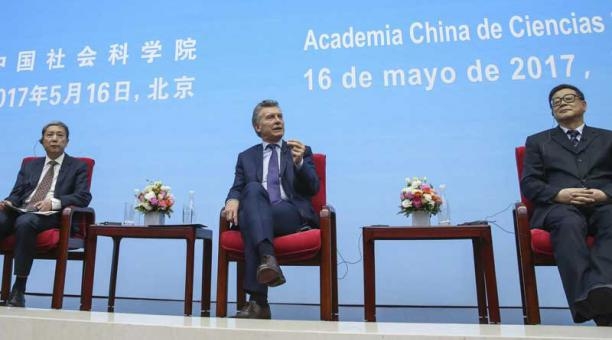 Al brindar un discurso en la Academia china de Ciencias Sociales, el presidente Mauricio Macri sostuvo este martes que uno de los propósitos de su visita a Beijing es “equilibrar la balanza" comercial que actualmente es "demasiado favorable para China" e "invertir recíprocamente para los dos lados".
