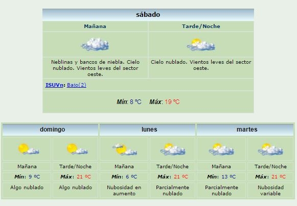 El domingo, las temperaturas ascenderán levemente (entre 9 y 21 grados), con cielo algo nublado.