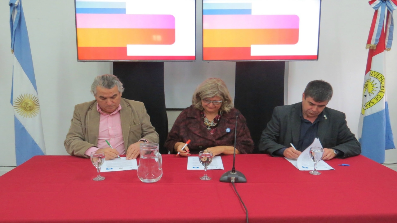 Los ministros de Ciencia, Tecnología e Innovación Productiva, Eduardo Matozo; y de Educación, Claudia Balagué; encabezaron este viernes la firma de un convenio con el subsecretario de Servicios Tecnológicos y Productivos de la Nación, Carlos Pallotti, para implementar el Plan 111MIL en la provincia de Santa Fe.