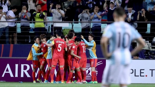 A pesar del gol, la Selección de Úbeda siguió dominando, se acercó al arco rival y hasta merecía empatarlo, pero a los 41 un pelotazo largo complicó al fondo argentino, Senesi dudó, Petroli salió lejos y mal y le cometió penal con un topetazo al 9, Cho Youngwook. El encargado de convertir el 2-0 fue Paik Seungho, que cruzó el remate.