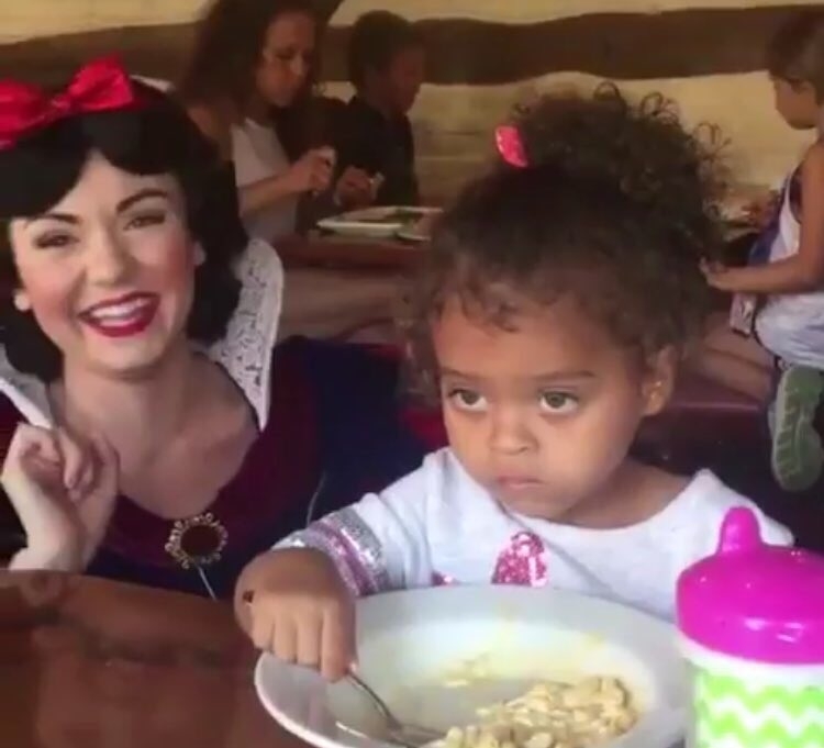 Katrell Hunter compartió en Facebook un vídeo en el que se ve a la pequeña comiendo en un restaurante de Disneyland y sin ganas de que la molesten. Blancanieves se acerca, le dice que se hagan una foto juntas y, sin mediar palabra, Kaylin le gira la cara.