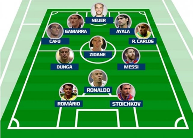 Dentro de los elegidos, tan solo tres son europeos, entre los cuales se destacan el arquero Manuel Neuer, Zinedine Zidane y Hristo Stoichkov, acompañados por otros cinco brasileños, los argentinos Linel Messi y Roberto Ayala y un paraguayo.