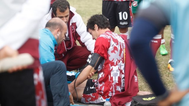 El árbitro Mario Ejarque decidió suspender el cotejo, tras esperar algunos minutos y observar la evolución de los jugadores lastimados, quienes no acusan lesiones graves pero no estaban en condiciones de jugar.