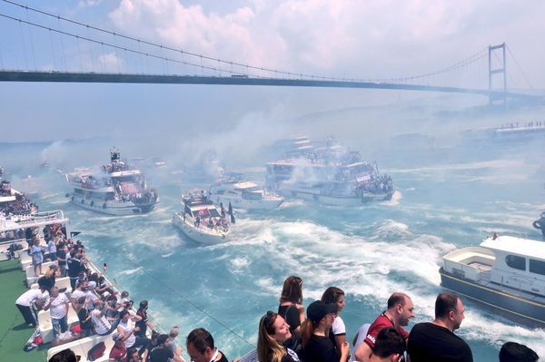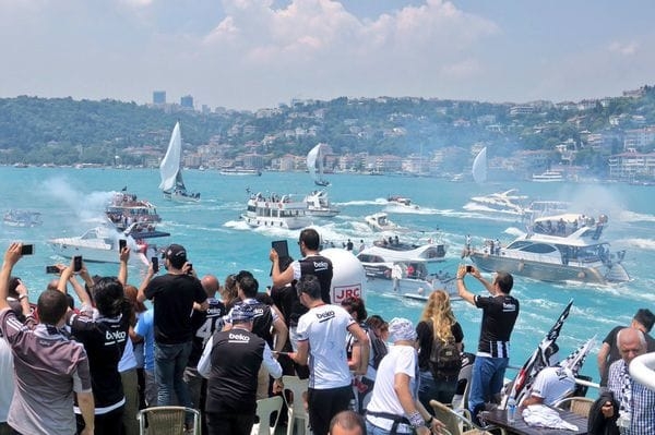 Sin embargo, en este caso el conjunto turco quiso variar y le dio un toque tan original como espectacular a su festejo. El equipo se subió a bordo de un crucero y navegó por el canal del Bósforo, pero no lo hizo en soledad.