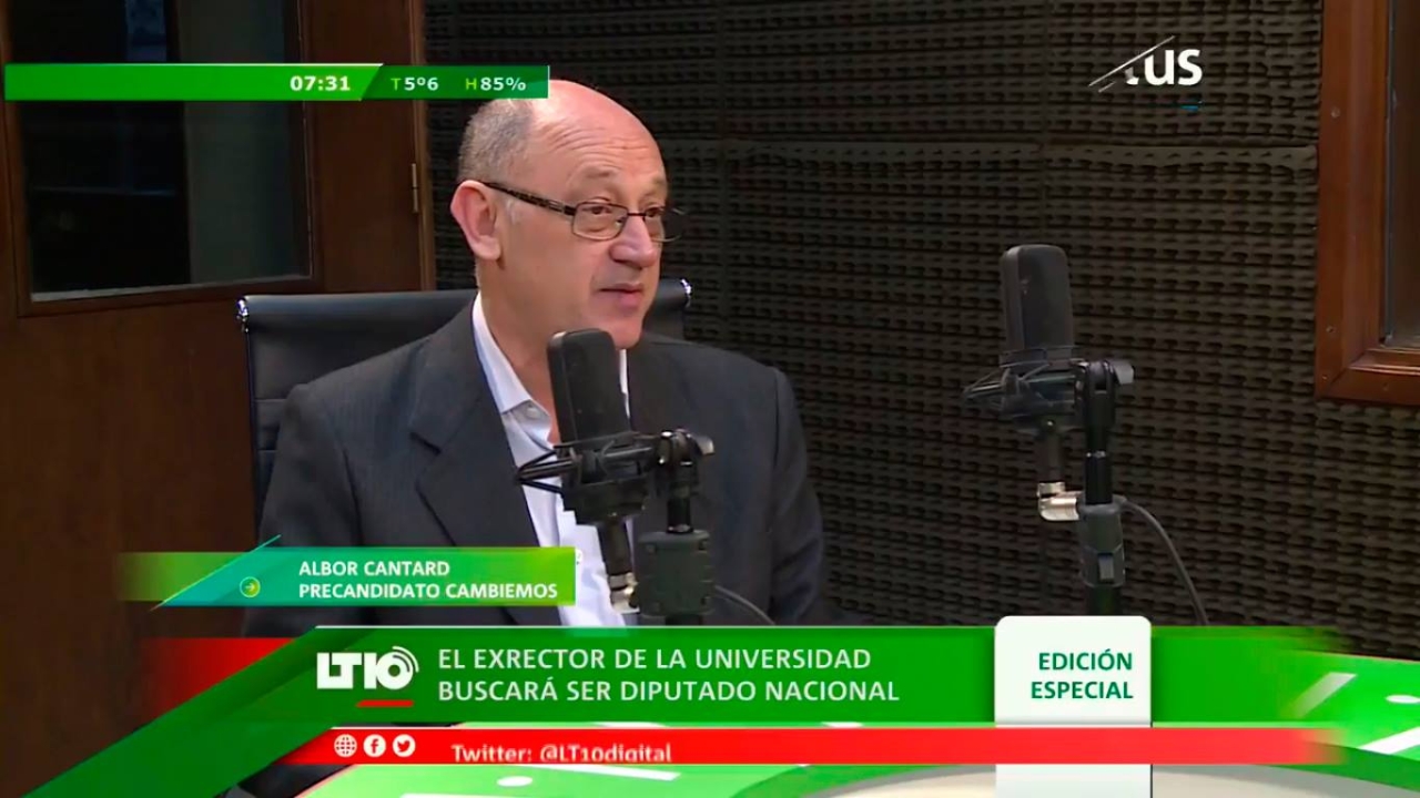Albor Cantard, candidato a diputado nacional por Cambiemos, visitó el estudio de LT10, en el marco de un programa especial de Litus y manifestó sus opiniones sobre el escenario político nacional y provincial.