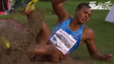 En su primer salto de la jornada en la Diamond League de Oslo, la nigeriana Blessing Okagbare sufrió uno los episodios más incómodos de su carrera.