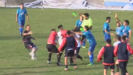 Un verdadero escándalo. El duelo entre Argentino de Rosario y Juventud Unida, correspondiente a los cuartos de final del reducido de la Primera D, terminó en una verdadera batalla campal.