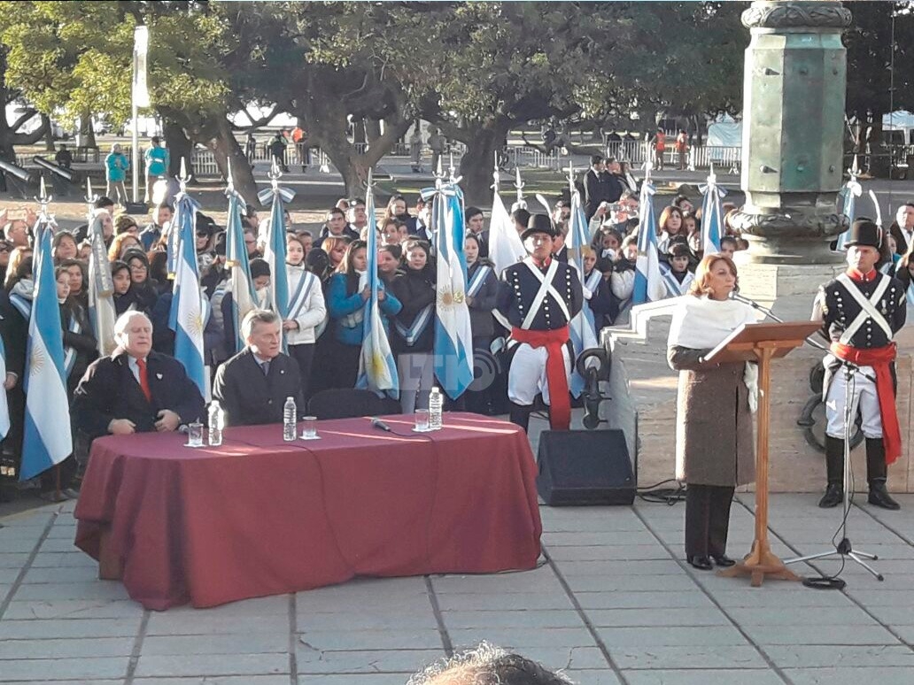 En una jornada helada, se desarrollaron esta mañana en Rosario los actos centrales por el día de la bandera, presididos por el Presidente Mauricio Macri, el gobernador Miguel Lifschitz y la intendenta de Rosario, Mónica Fein.
