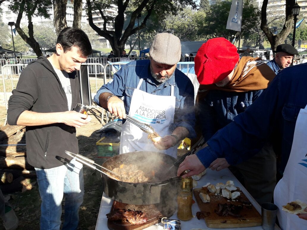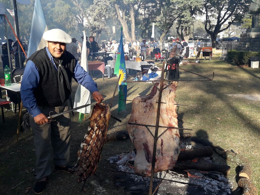 No habrá habido desfile, pero los rosarinos no se privaron de festejar el Día de la Bandera por todo lo alto. ¿Cómo? Con la argentinidad al palo, organizaron un concurso de asado a la estaca en el marco de los festejos populares que tuvieron lugar hoy desde las 10 en Rosario, después del acto central que fue presidido por Mauricio Macri.