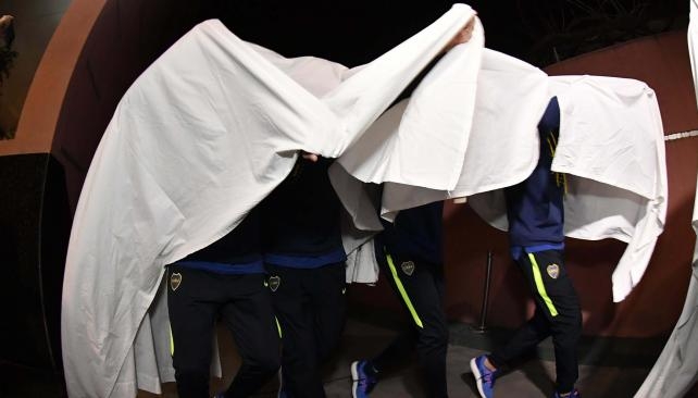 Por las escaleras, bajaron varias personas tapadas completamente con sábanas blancas, simulando ser fantasmas, y cantaron y bailaron junto a los hinchas antes de reingresar. Bajo las telas, se podían apreciar algunas indumentarias deportivas del plantel aunque en otros casos también camisas y contexturas poco atléticas. ¿Se trataba de protagonistas?