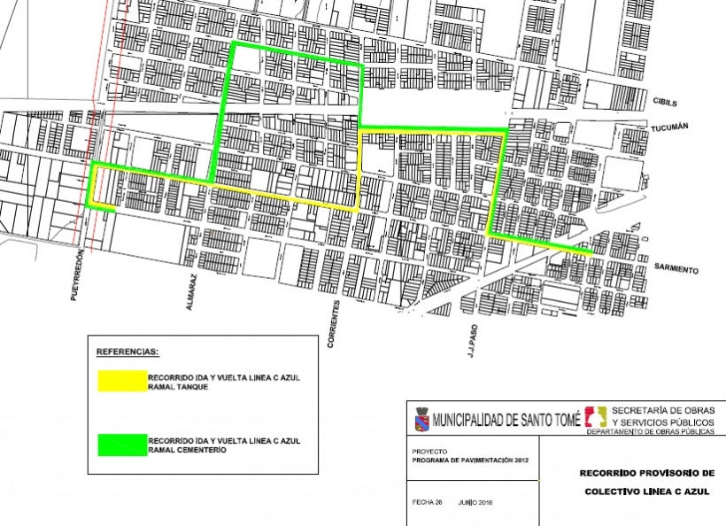 Recorrido provisorio de la C azul, ramal Tanque:
