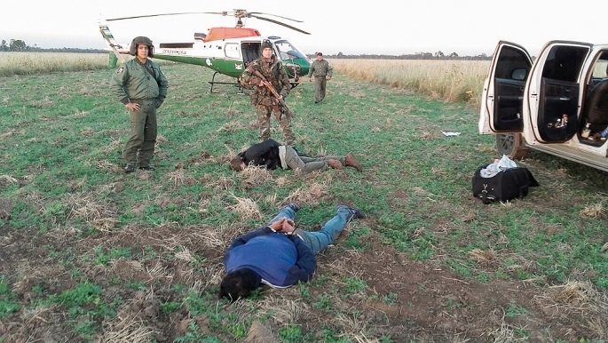 En tanto, en tierra hacen un seguimietno con el helicpòtero y detienen a dos ciudadanos, que eran los que trasportaban la droga y completan el hallazgo de otros kilos más, que son los completan las casi dos toneladas que hallaron.
