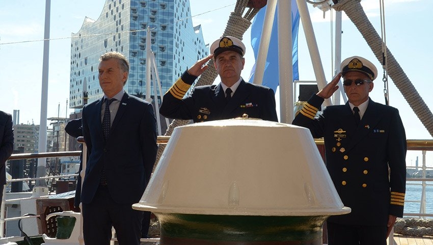 La fragata recibió al Presidente y su comitiva con su cubierta colmada por tripulantes y por una delegación de argentinos residentes en Hamburgo, bajo un sol radiante y con una ciudad que recuperaba su normalidad luego de haber estado blindada durante la cumbre del G20, que concluyó este sábado al cabo de cuatro días en los que hubo violentos disturbios en barrios de su periferia.