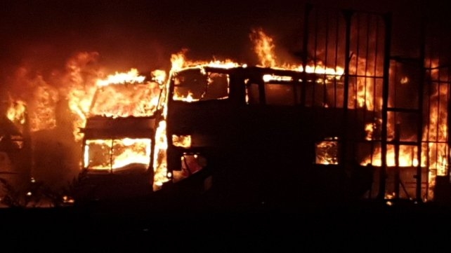 Quemaron más de 25 micros en los galpones de Monticas