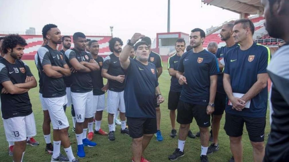 Diego Armando Maradona dirigió su primera práctica como técnico del Al Fujairah, club con el que firmó un acuerdo por una temporada y con el que tendrá el objetivo de subir a la máxima categoría del fútbol de Emiratos Árabes.