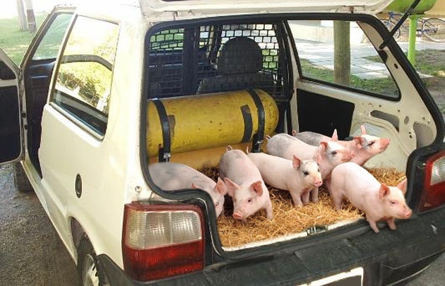 En un insólito hecho, la Policía de la departamental Río Cuarto detuvo a dos hombres que llevaban 18 lechones robados en el interior de un Fiat Uno, en la zona de la Universidad de esa ciudad. El operativo se montó en la localidad de Charras por la presencia sospechosa del vehículo donde se transportaban los supuestos ladrones.