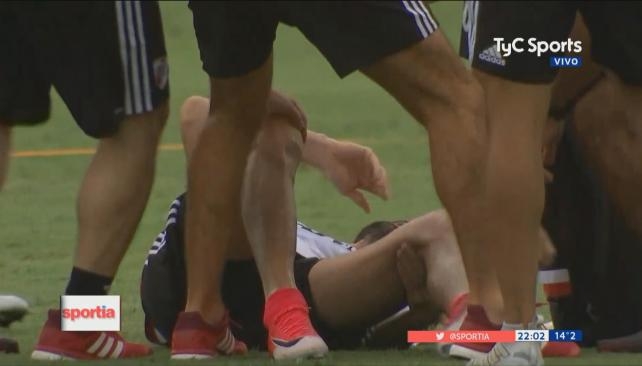 El delantero de River se lesionó durante la práctica de hoy, en Orlando: intentó ejercer presión en un ejercicio, realizó un mal movimiento y cayó el piso. Los estudios confirmaron que tiene un esguince de rodilla izquierda.