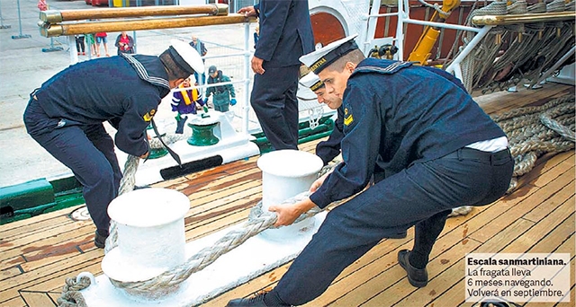 Con los gavieros formados sobre las tablas de jarcia, el buque rindió honores al país anfitrión; en tanto las familias que se encontraban en el muelle saludaron con aplausos la llegada de la embarcación.