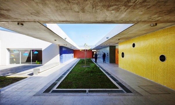 El edificio, desarrollado en una planta, consta de cuatro aulas, un Salón de Usos Múltiples, áreas de administración y apoyo. La particularidad de esta obra es que está sobre elevada del terreno, a través de una estructura de hormigón armado a fin de alcanzar cota segura y mantener la superficie libre del terreno natural que funciona como reservorio del sector.