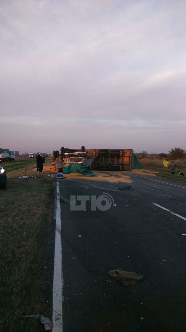 Como consecuencia del choque, el conductor del vehículo de mayor porte perdió la vida. La carga que transportaba (cereales) quedó dispersa en la carpeta asfáltica. En tanto, el único ocupante de la camioneta resultó con heridas leves.
