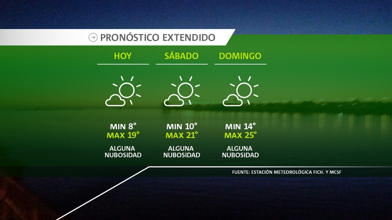- Cielo despejado, con alguna nubosidad variable por momentos. Condiciones estables. Temperaturas con suave ascenso. Vientos leves a moderados del sector noreste.