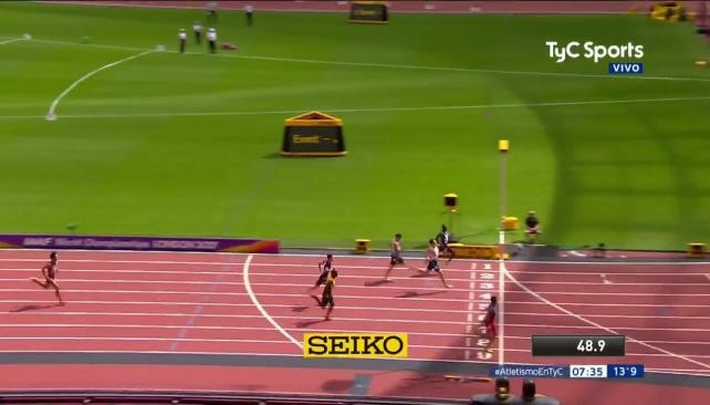 El mendocino terminó la cuarta serie de competencia detrás del dominicano Juander Santos y el noruego Karsten Warholm, con una marca de 49.69, y superó el récord nacional que él mismo había establecido en abril.