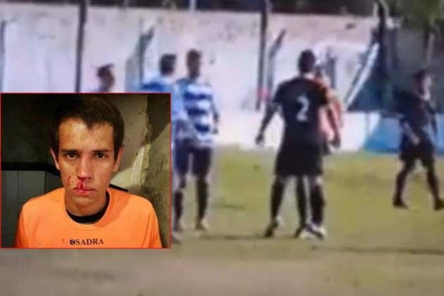 La sorprendente reacción del futbolista fue cabecear en el rostro al referee del partido, pero también le propinó un golpe en el rostro antes que fuera contenido por sus compañeros y que ingresaran los efectivos policiales al campo de juego.