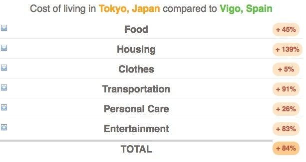 Por ejemplo, esta es la diferencia entre vivir en Tokio o Vigo: