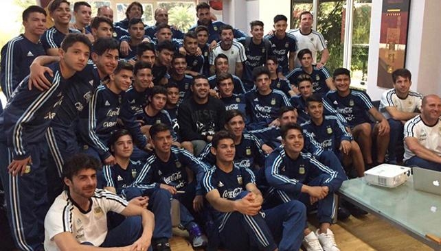 Invitado por su amigo Pablo Aimar, seleccionador de la Sub 17 y Diego Placente, técnico de la Sub 15, Román mostró gran predisposición y se fotografió con los chicos.