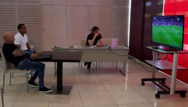Al igual que en los anteriores encuentros, el técnico de Argentina y su ayudante le mostraron videos sobre distintas acciones de juego y dialogaron sobre lo que se le viene a la Albiceleste: Uruguay y Venezuela.