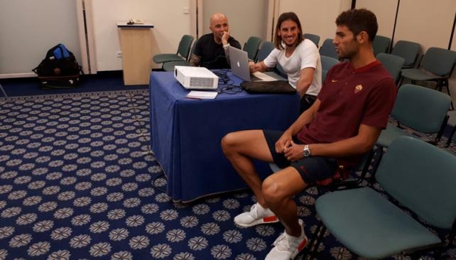 A horas de presentar su primera lista oficial de cara a los duelos ante Uruguay y Venezuela por las Eliminatorias Sudamericanas, Jorge Sampaoli sigue con su gira por Europa y durante esta mañana se reunió con Federico Fazio, Joaquín Correa y Nicolás Pareja. El actual defensor de la Roma, de Italia, no tuvo continuidad con la celeste y blanca y en la última convocatoria, para los amistosos ante Brasil y Singapur, apareció como reemplazo de Javier Mascherano, lesionado. De hecho, abrió el marcador en el 6-0 al equipo asiático.