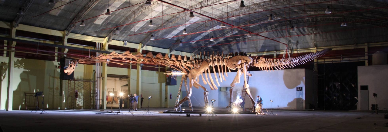 La historia comenzó en 2013 en la estancia La Flecha, en la provincia patagónica de Chubut. Un peón rural avisó a los hermanos Mayo, dueños de las tierras, del hallazgo de un posible hueso de dinosaurio y se pusieron en contacto con el Museo Paleontológico Egidio Feruglio (MEF), en Trelew. A ese resto inicial, un equipo del MEF sumó otros 200 durante largas jornadas de excavación. En total desenterraron los esqueletos parciales de seis ejemplares de titán patagónico.
