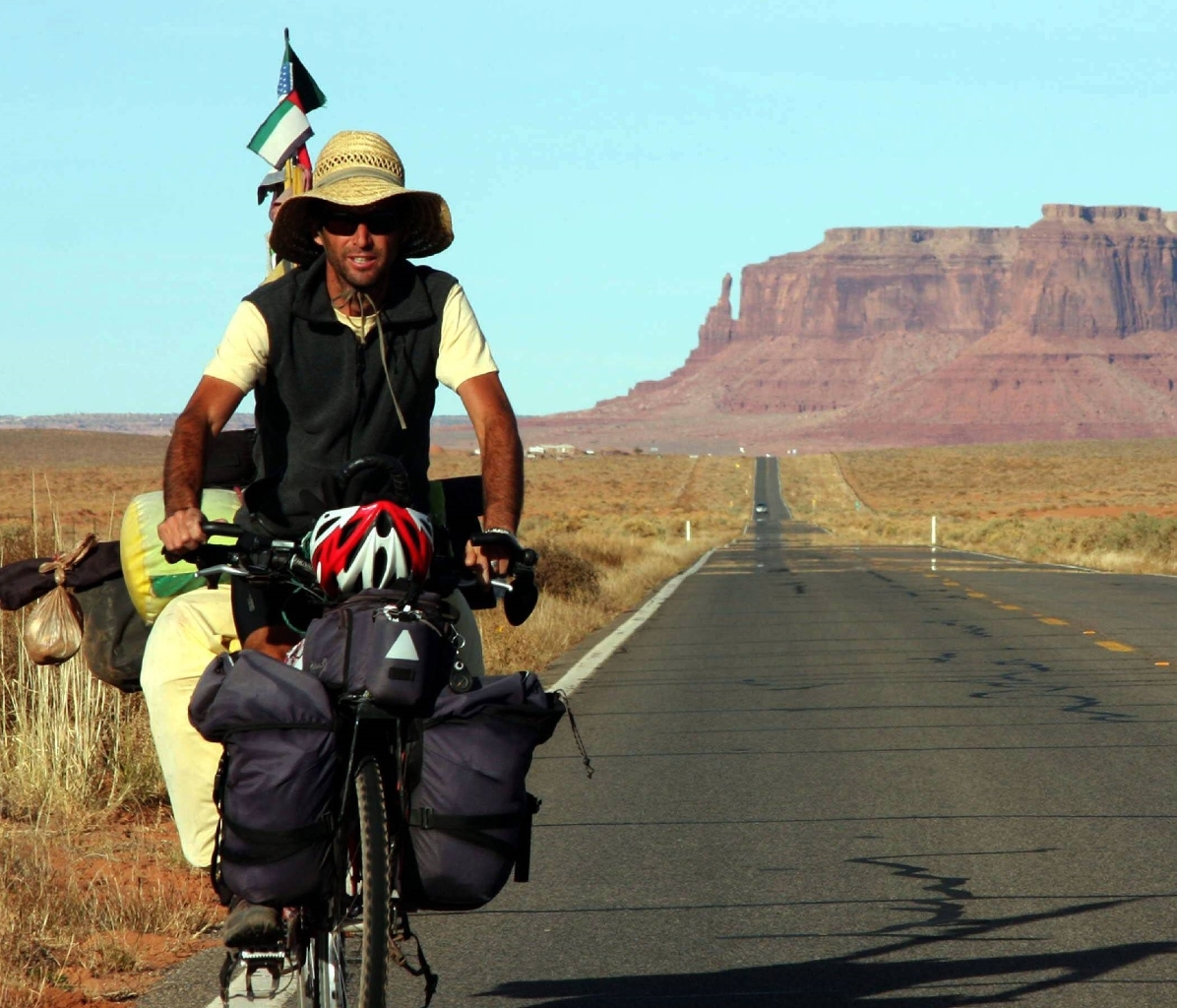 Pablo es técnico en turismo y habla español, inglés, italiano y portugués; afirma que los idiomas lo ayudaron, pero lo que más le ha sido de utilidad para sociabilizar con los demás son las banderas que lleva en su bicicleta. Estas representan los lugares que visitó.