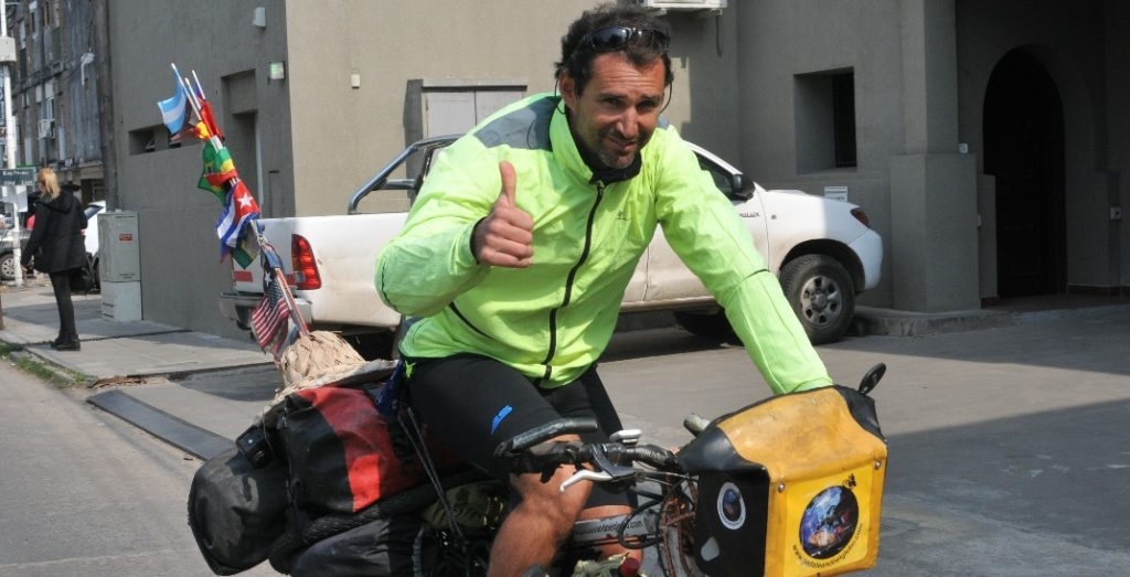 Pablo García es oriundo de San Andrés, provincia de Buenos Aires. A los 44 años recorrió 164 mil kilómetros y conoció más de 100 países. Está de nuevo en Argentina para culminar su último tramo y pasó por nuestra ciudad.