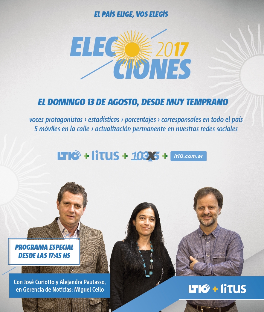 Especial #PASO2017 🗳 Este domingo, desde las 17.45, el minuto a minuto de las #EleccionesLegislativas se vive por @lt10digital y @LitusTv. pic.twitter.com/7KOQKIYGaS