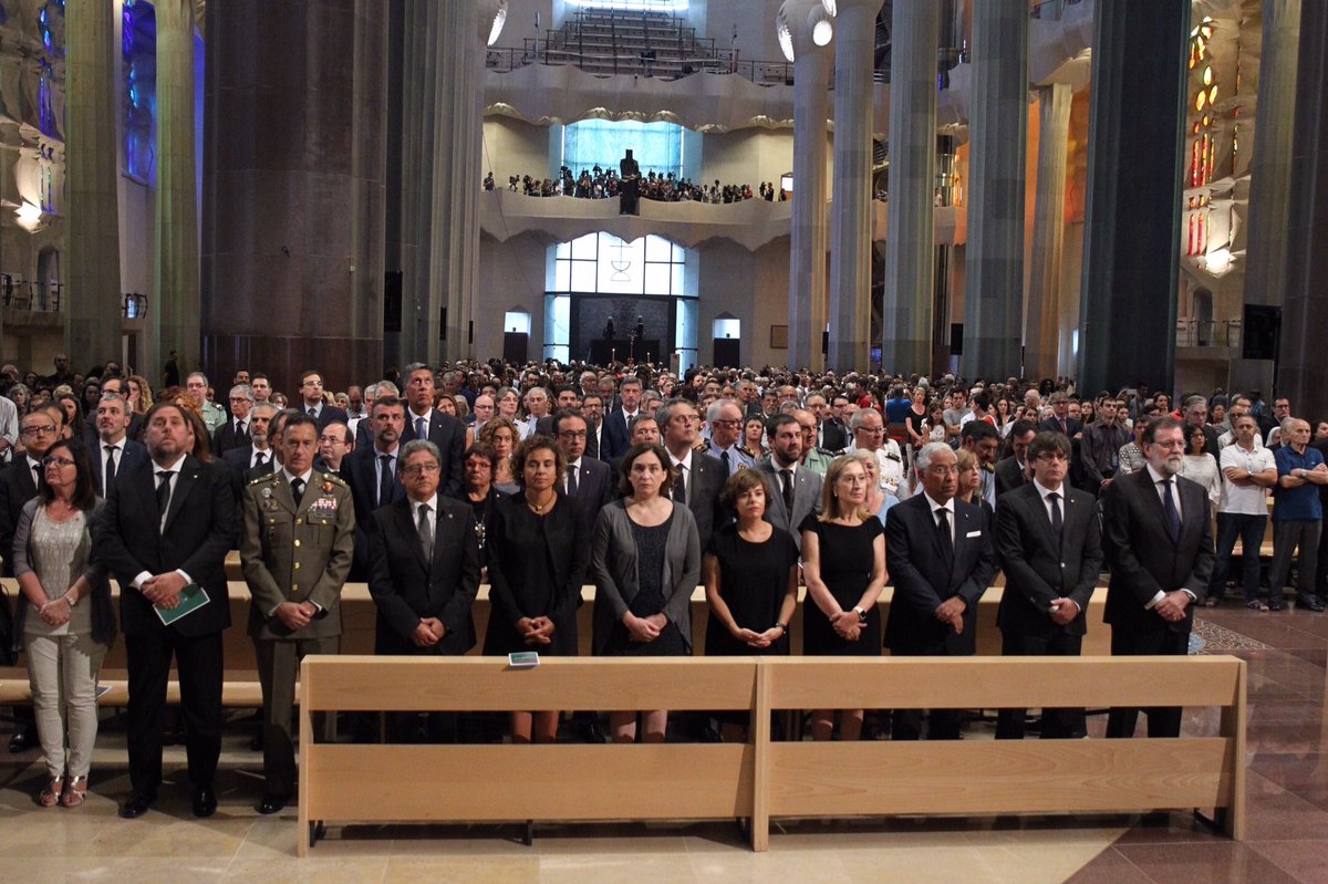 A la misa en uno de los grandes símbolos de Barcelona, la basílica de la Sagrada Familia, acudieron el rey Felipe VI, el jefe de Gobierno Mariano Rajoy y el presidente de Portugal, Marcelo Rebelo de Sousa, de donde provenían dos víctimas, además de la plana mayor de los Gobiernos de Cataluña y Barcelona.
