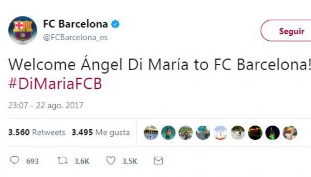 Barcelona anunció en sus redes sociales a Ángel Di María, pero luego aclararon que era un hackeo del grupo de seguridad "OurMine". A pesar de la hora, el posteo obtuvo más de siete mil retuits en sólo quince minutos.