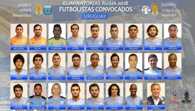 Oscar Washington Tabárez tuvo que alterar la lista original de jugadores en el exterior de cara a la doble fecha de Eliminatorias Sudamericanas que se avecina. Además, con la adición de algunas caras del fútbol local confirmó los 25 jugadores con los que afrontará los partidos ante Argentina, del 31 de agosto, y frente a Paraguay, del 5 de septiembre.