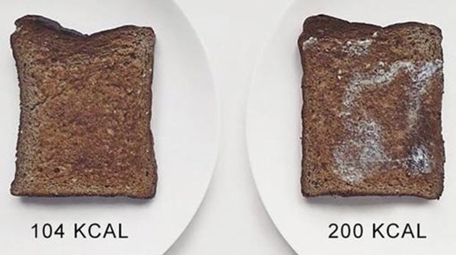Este sí es un caso que muchos más tendrán presente. ¿Cuánto influye a nivel de kilocalorías la decisión de añadir algo de mantequilla a las tostadas del desayuno? Lucy, en cualquier caso, asegura que no prescinde de nada que le guste. Simplemente ha aprendido a controlar el tamaño de las raciones que ingiere.