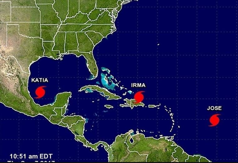 Con el huracán Irma rompiendo todos los récords por su intensidad y poder destructivo, dos huracanes más surgieron en el Atlántico: Katia, en el golfo de México y José, acercándose al Caribe desde el Este.