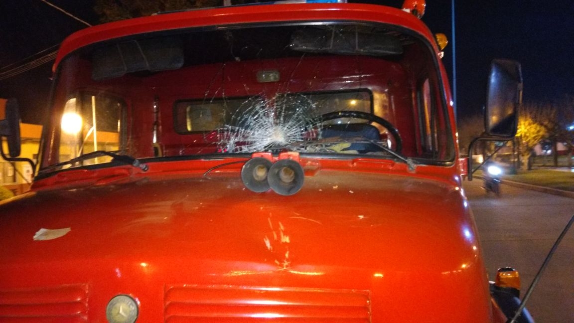 Si bien no hubo que lamentar heridos, el resultado fue la rotura del parabrisa del lado del conductor. Es por esto que no pudieron sofocar el incendio inmediatamente y tuvieron que quedar a 200 metros del lugar. "Fue imposible llegar al lugar" afirmó Canziani.