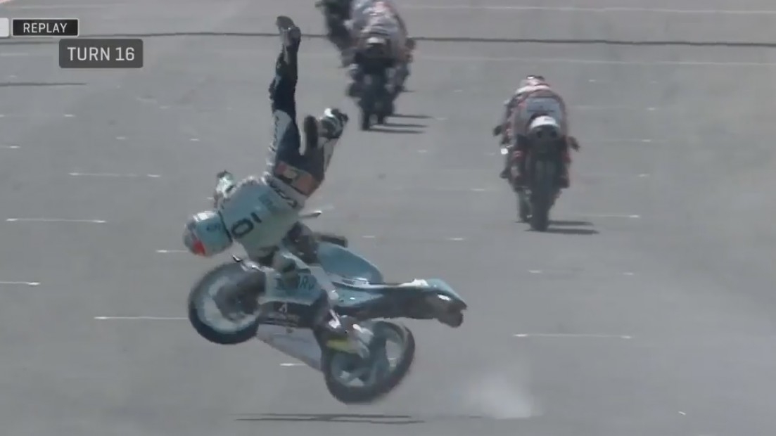 Livi Loi sufrió un aparatoso accidente durante la qualifying de Moto3, tras encontrarse la moto de Gabriel Rodrigo en medio de la pista. El belga salió disparado por encima de la moto del argentino, dejando helados a todos los espectadores.