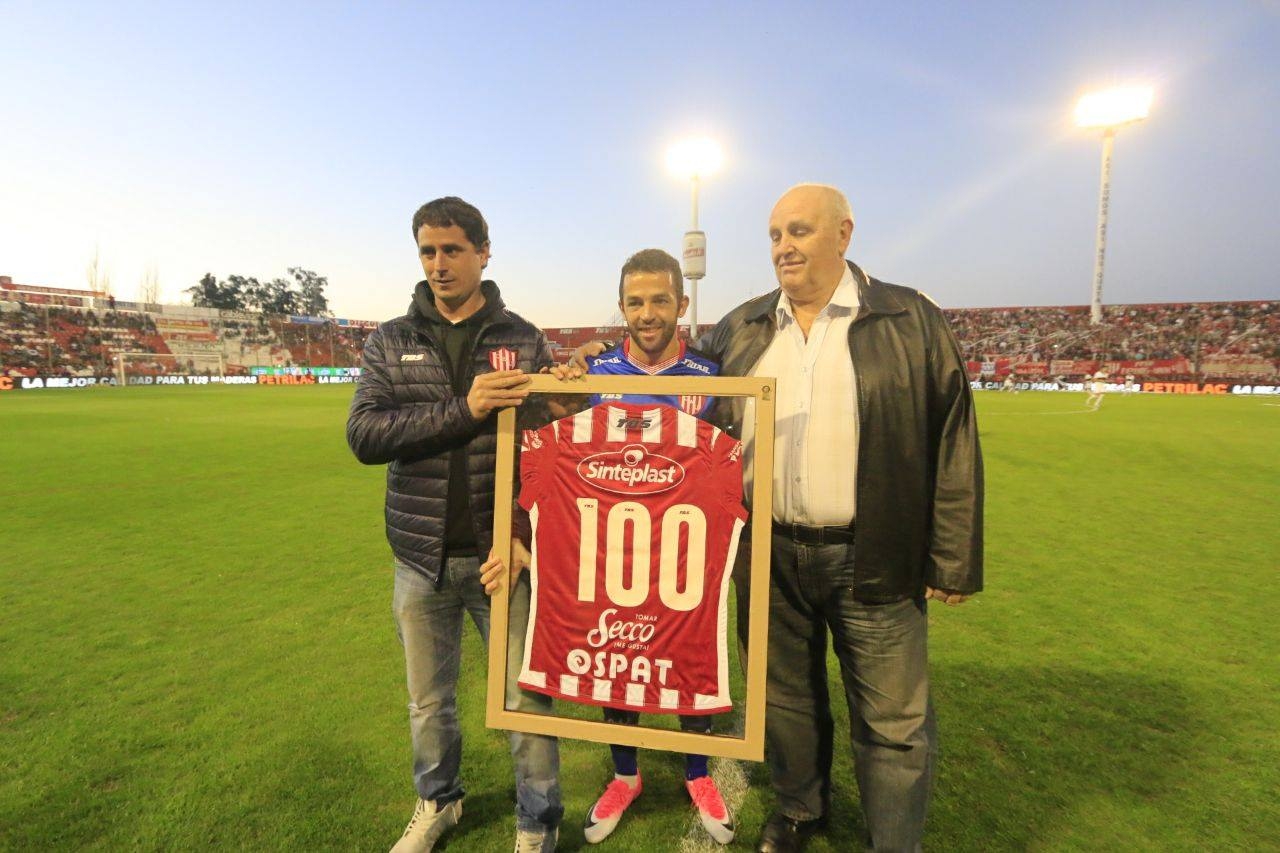 Lucas Gamba fue reconocido por los dirigentes tras haber llegado a los 100 partidos con la camiseta de Unión. El mendocino lo consiguió en el cotejo ante Lanús, por la Copa Argentina, y en el primer partido como local de la temporada fue agasajado y recibió una camiseta alusiva de manos del presidente Luis Spahn y del director deportivo Martín Zuccarelli.